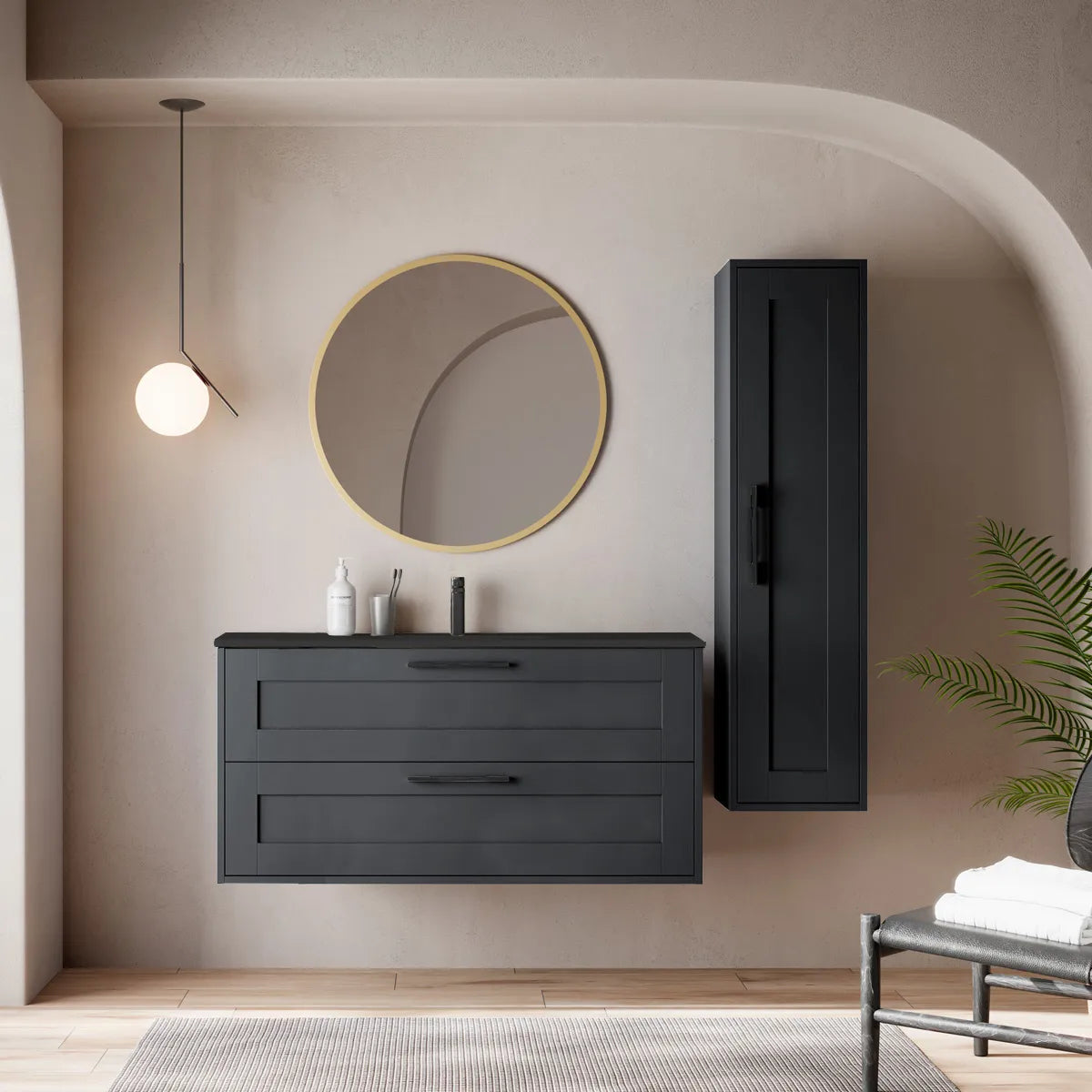 Kollektionen omfatter kommoder og højskabe med rammefronter og skjult ophæng. Serien fås i fire gennemførte farver: marineblå, salviegrøn, antracitgrå og hvid. Alle møbler leveres færdigsamlede – for en professionel og nem installation.
