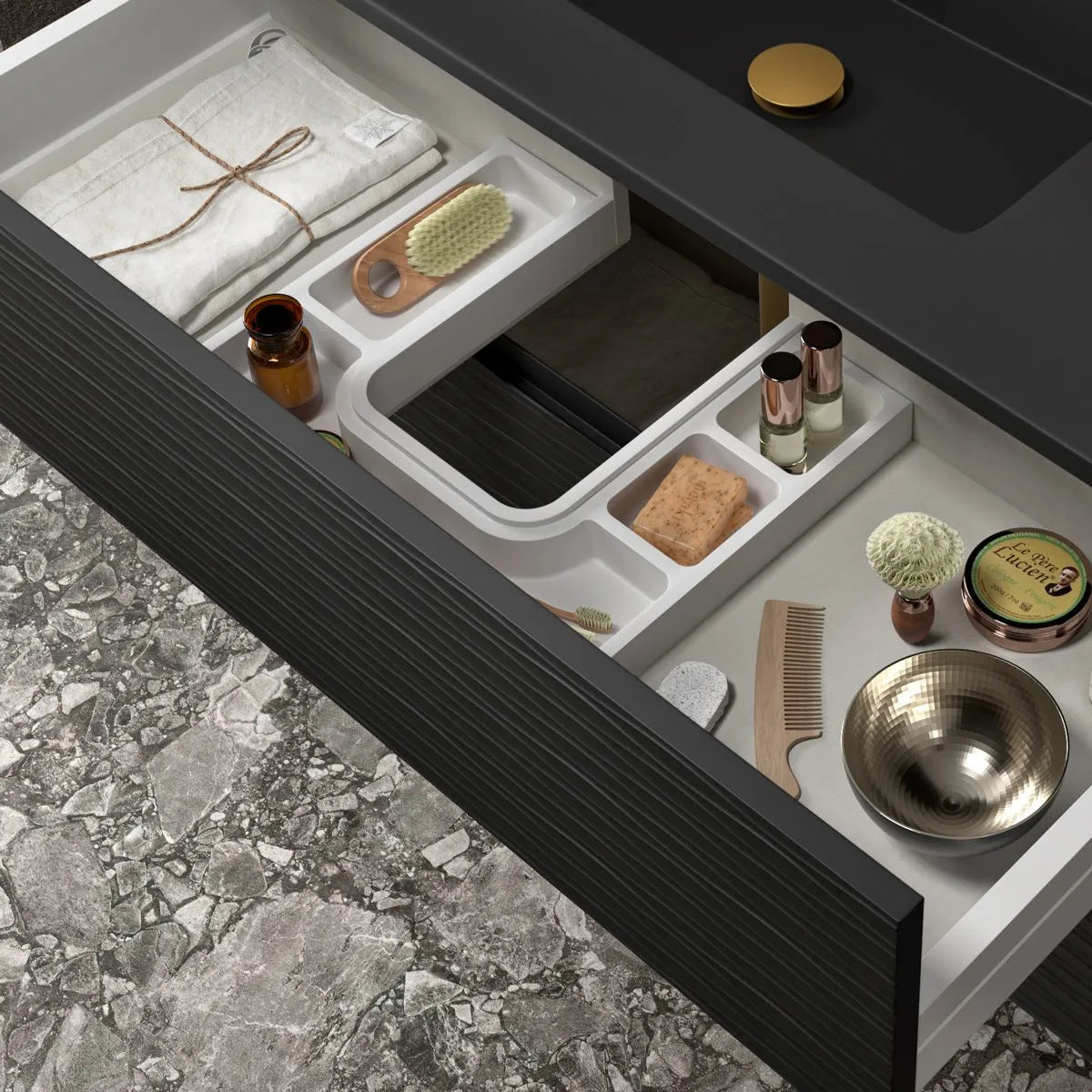 Med sit sofistikerede sorte design og funktionalitet er Tenfors Sahara Sort Mat et fremragende valg til dig, der ønsker at skabe et moderne, stilfuldt og velorganiseret badeværelse.