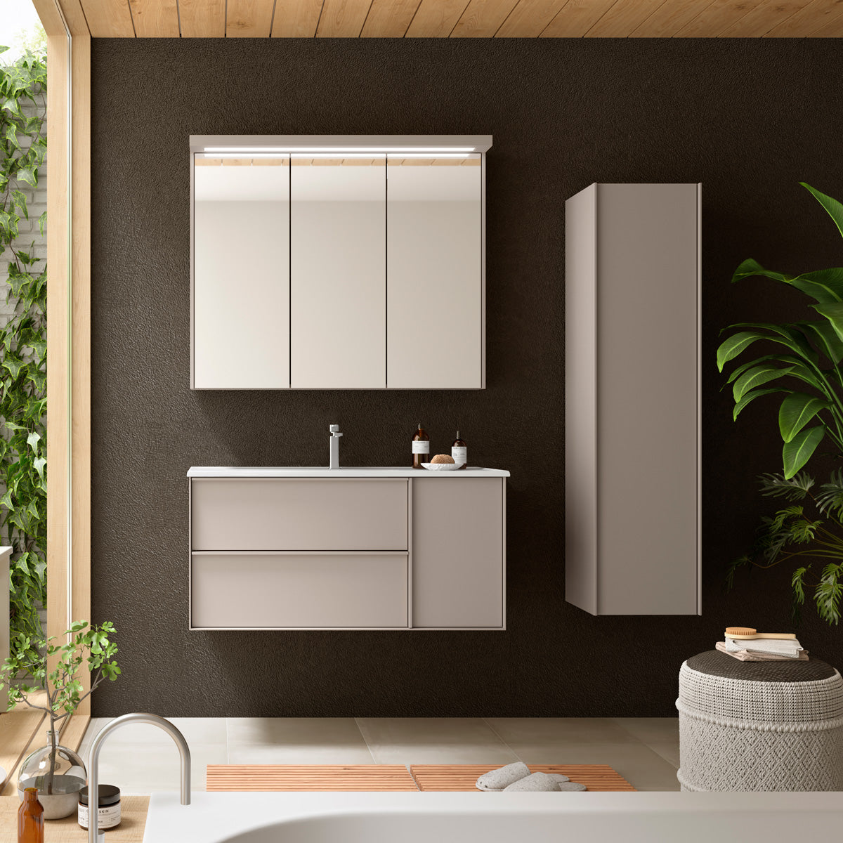 Kommoden leveres uden vask, hvilket giver dig frihed til at vælge en løsning, der passer til din stil – uanset om du foretrækker porcelæn, solid surface eller en fritstående håndvask. Den kan suppleres med: