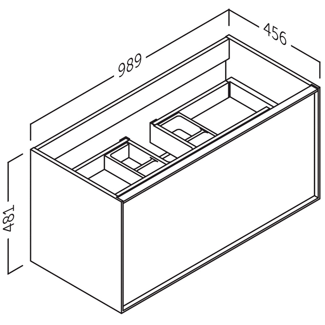 Kommoden fås i bredderne 60, 80 eller 100 cm – alle med en dybde på 46 cm og en højde på 48 cm. Det kompakte format gør den ideel selv i mindre rum, uden at gå på kompromis med funktion eller design.