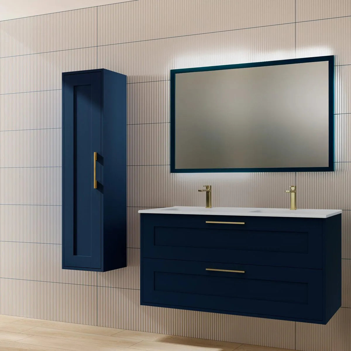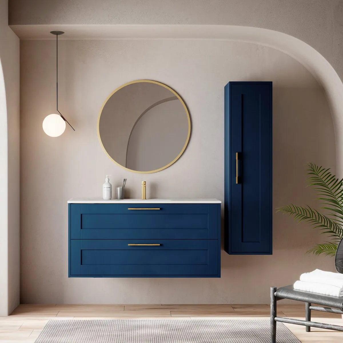 Kollektionen omfatter kommoder og højskabe med rammefronter og skjult ophæng. Serien fås i fire gennemførte farver: marineblå, salviegrøn, antracitgrå og hvid. Alle møbler leveres færdigsamlede – for en professionel og nem installation.