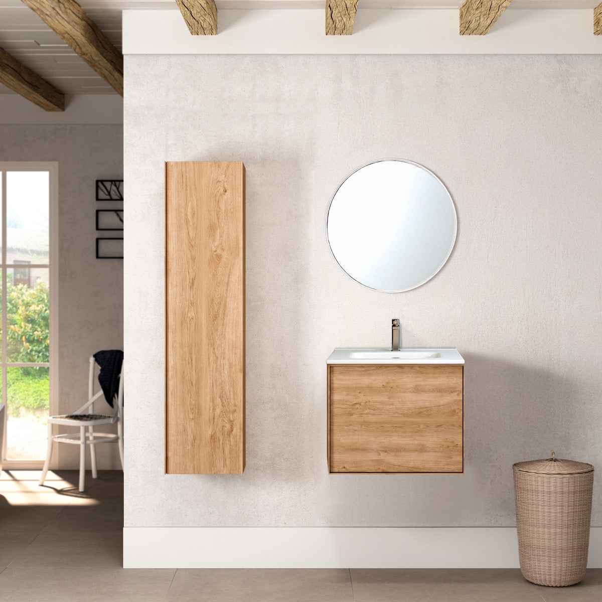 Tenfors Rosendal er en moderne og praktisk badeværelseskommode, tilgængelig i to elegante varianter – mat hvid og egetræslook. Med sine rene linjer, integrerede greb og smarte opbevaringsløsninger bliver Rosendal et stilfuldt midtpunkt i ethvert badeværelse – uanset om du indretter minimalistisk eller med varme og naturlige toner.