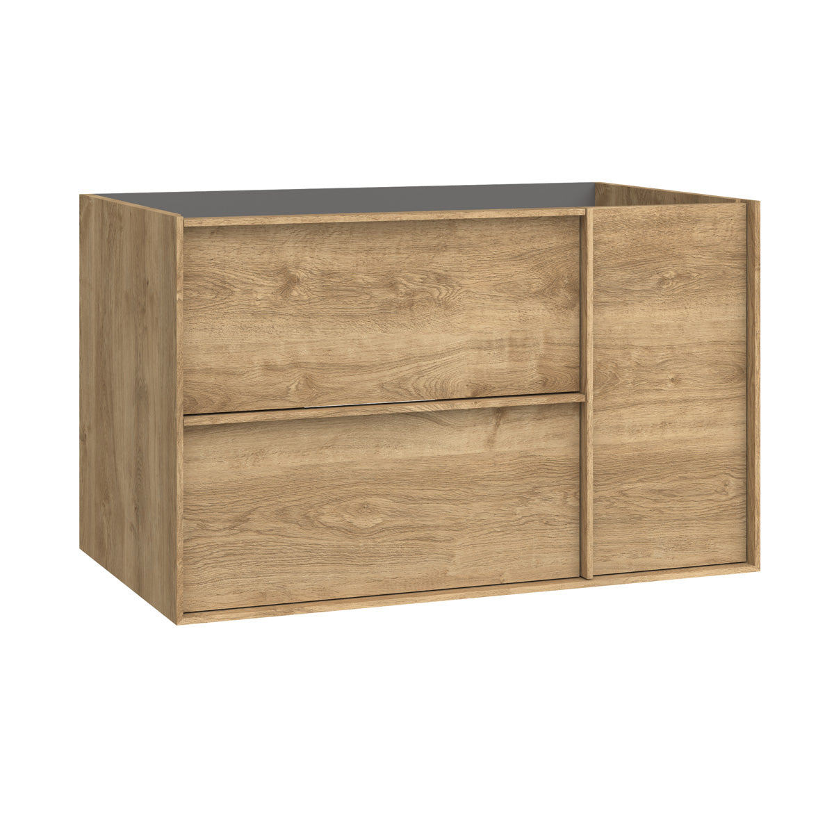Kommoden er udstyret med to fuldt udtrækkelige skuffer samt et sideplaceret skab med hylde – perfekt til opbevaring af både småting, flasker og håndklæder. Alle skuffer og låger har: