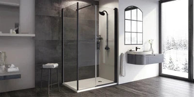 Brusedør Hafa Igloo Pro Buet 80 Klart glas Sort 2-pak