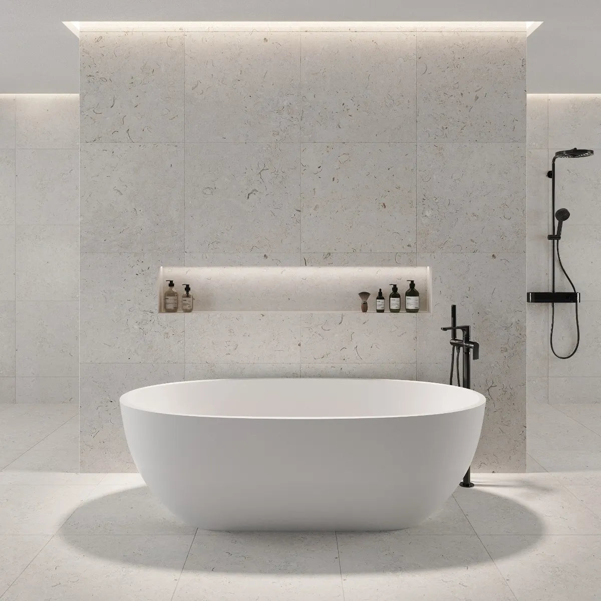 - Mat overflade med naturlige nuancer: Klinker Kalksten Norr tilbyder en subtil og elegant overflade, der efterligner kalkstenens autentiske skønhed. De naturlige nuancer giver dit rum en jordnær følelse og skaber en harmonisk atmosfære.