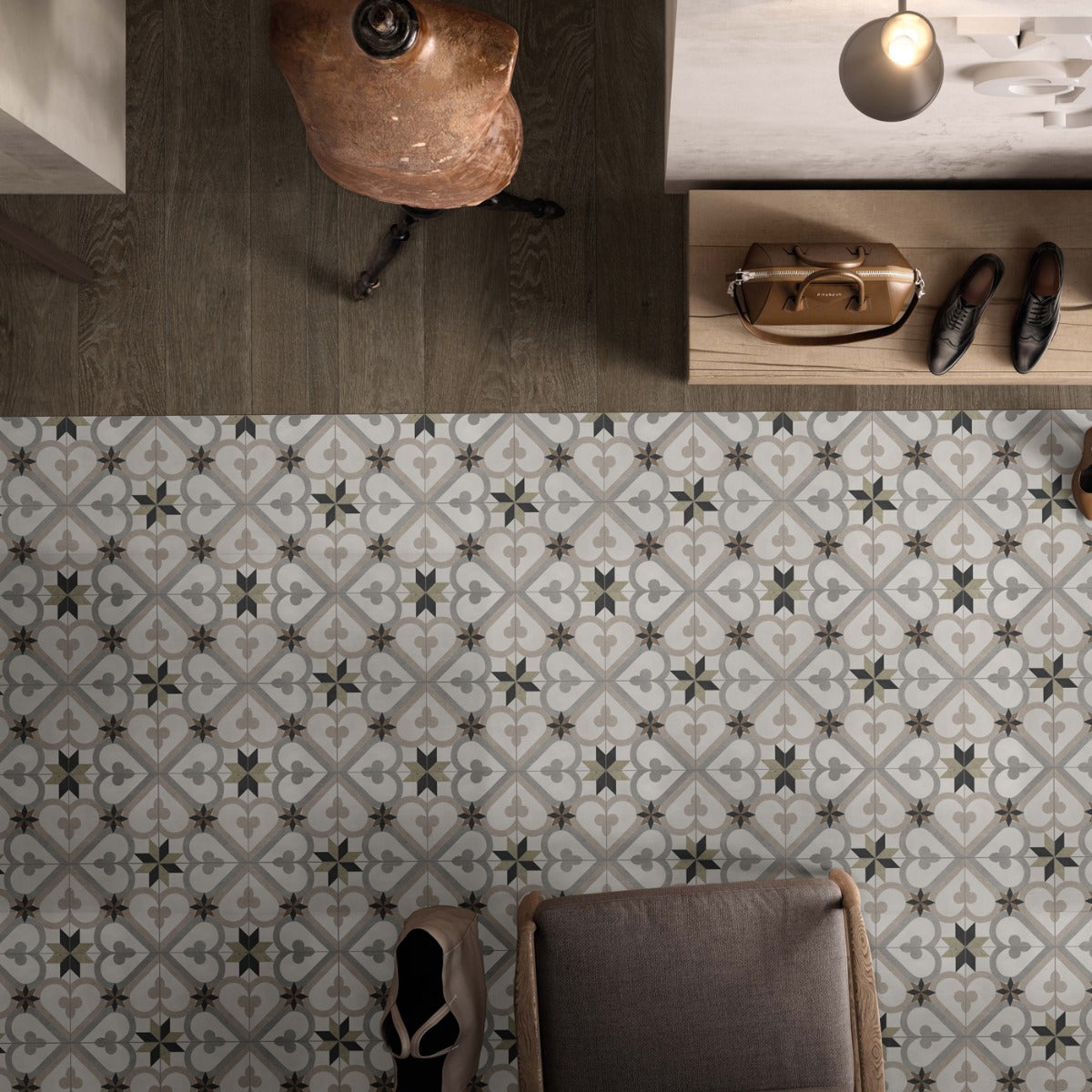 Klinker Cadaqués er en flise fra Mediterranea-serien med et klassisk mønster i neutrale nuancer.