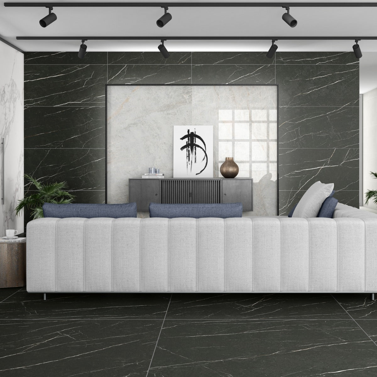 Med rektificerede kanter muliggør Klinker Elite Black Marmor Matt brugen af smallere fuger, så tynde som 1 mm. Dette giver ikke kun en moderne og stilfuld æstetik, men også en mere ensartet og ensartet overflade. Den smalle fugning giver også mulighed for at fremhæve det elegante mønster og skabe en følelse af ubrudt kontinuitet.