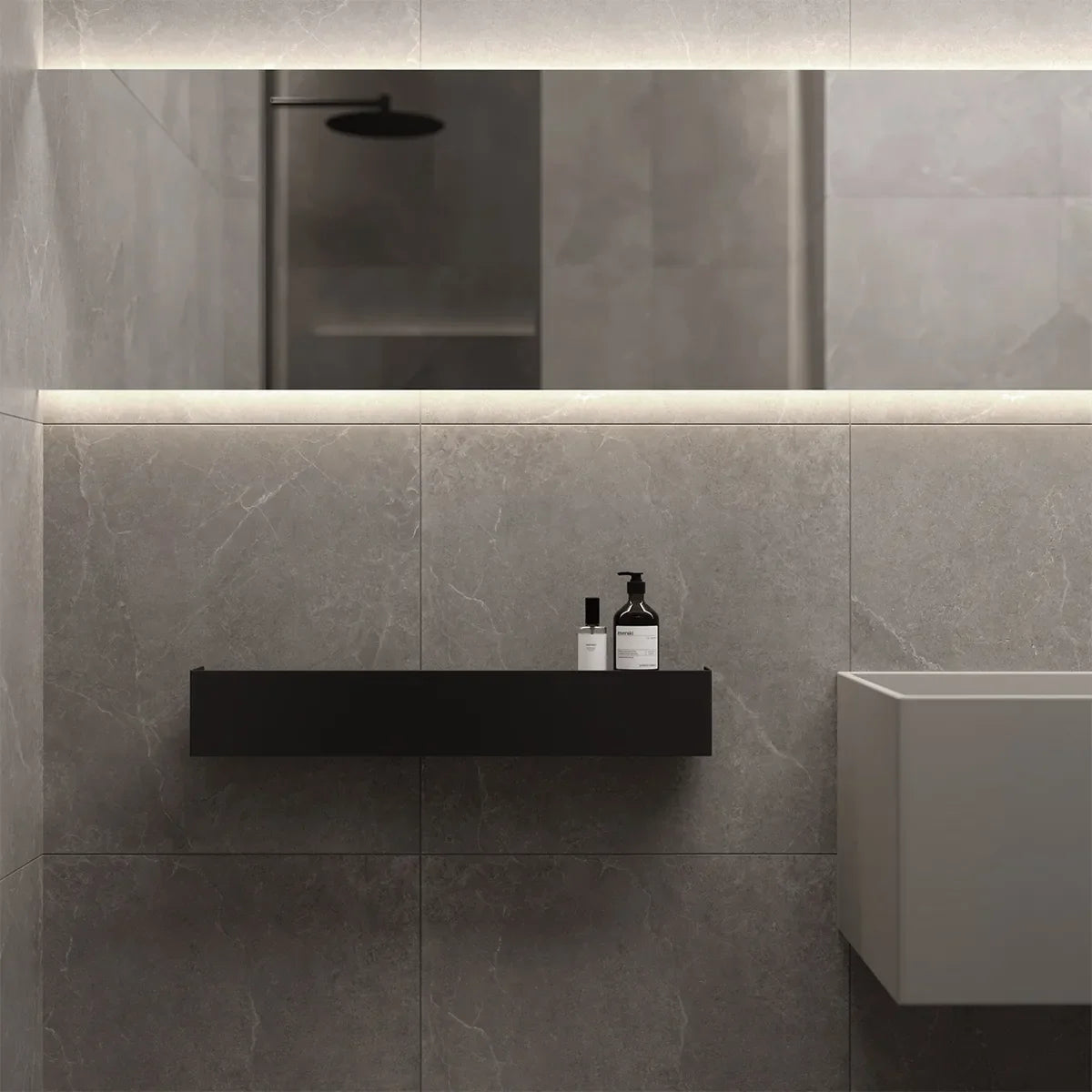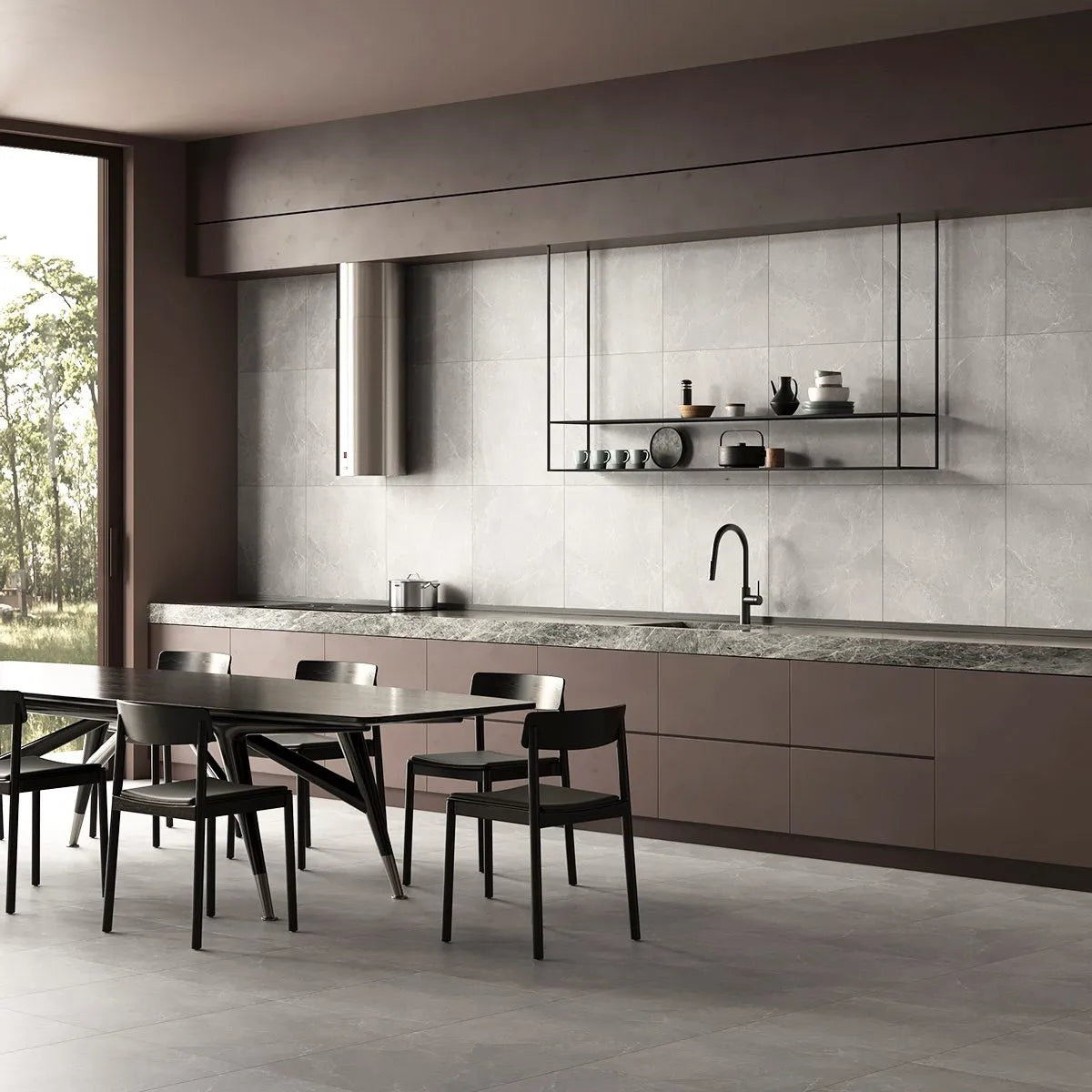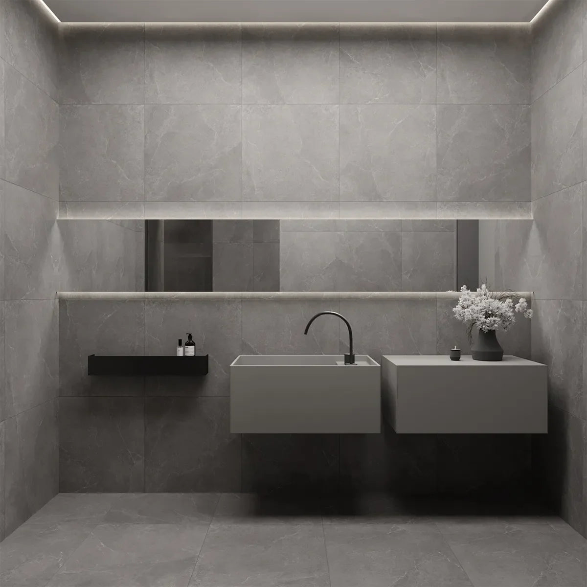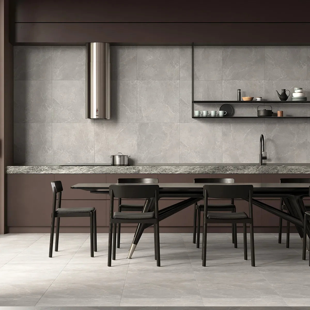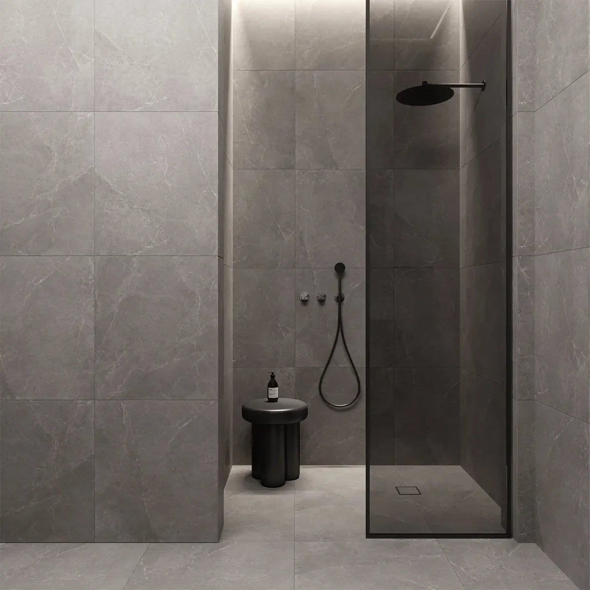Klinker Storm Grey 60x60 er en grå, let marmoreret granitkeramik med mat overflade. En diskret og naturlig sten-look som passer i de fleste miljøer. De rektificerede kante muliggør installation med smalle fuger, så små som 1 mm, hvilket skaber en ensartet og moderne følelse.