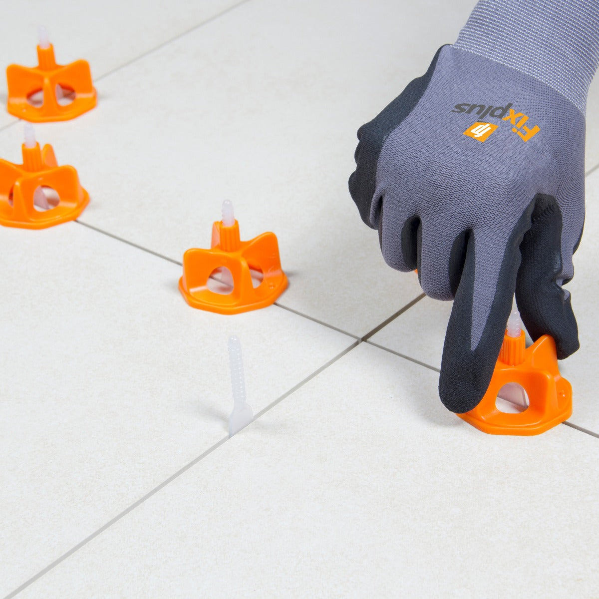- Når alle tenfors-nivelleringskopper er placeret, skal du vente 24 timer, indtil fugemassen er tør. Ved ekstra store fliser/klinker anbefales der en længere tørretid. Dette minimerer risikoen for konkave eller konvekse deformationer i flisen/klinken.
