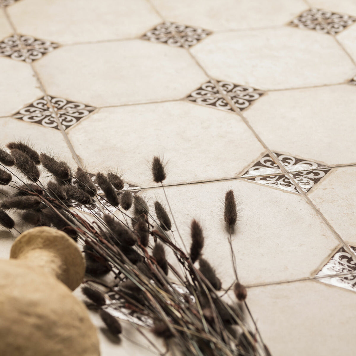 FS Field visuelle tiltrækning er uovertruffen. Kollektionen skiller sig ud med sine dekorative indlæg, der afspejler en spejlblank glans, hvilket skaber en spændende kontrast til flisens matte hvide overflade. Derudover tilbyder FS Field et udvalg af forskellige dekorative indlæg i blåt, brunt og sort, hvilket giver dig mulighed for at skræddersy dit design efter dine unikke præferencer og behov.