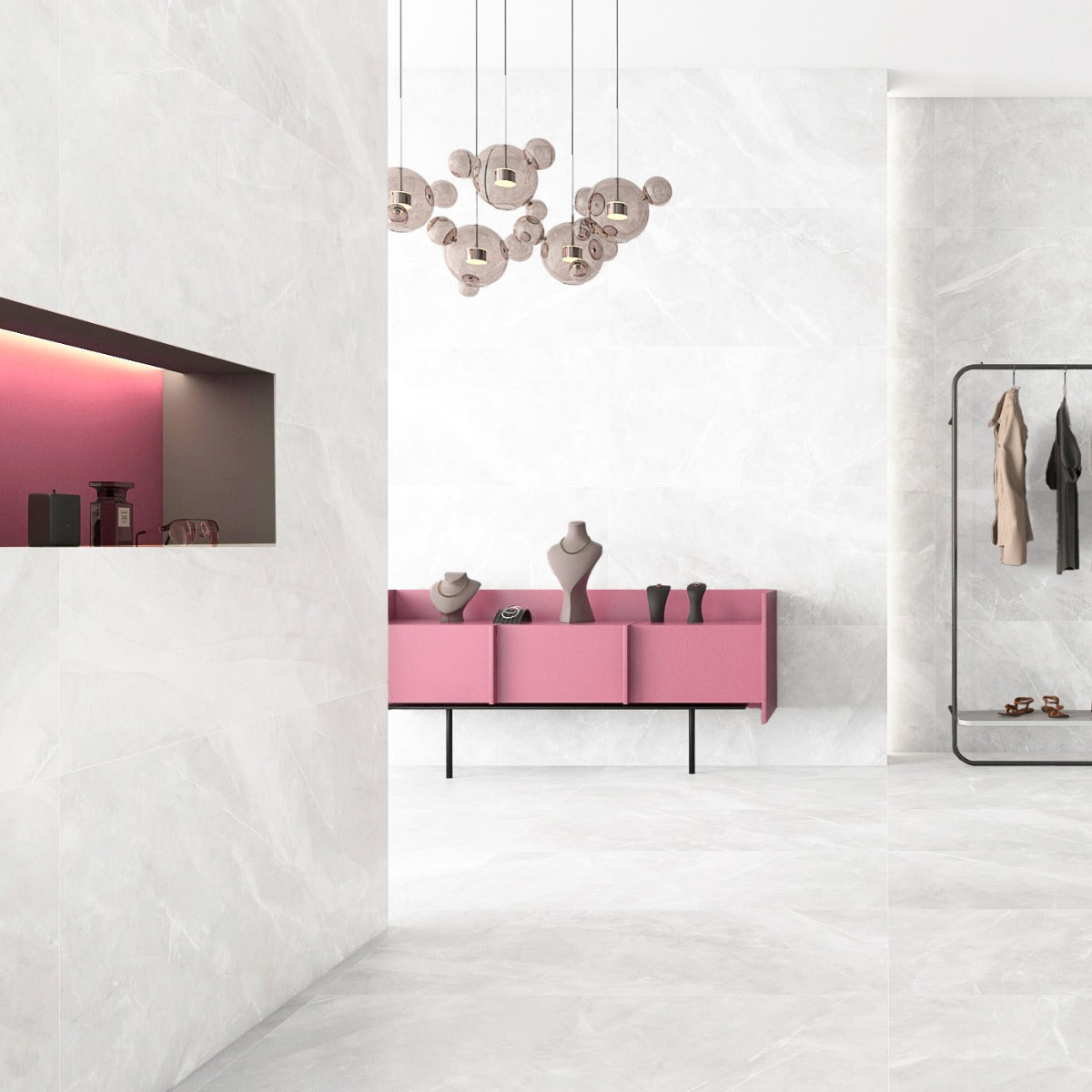 - Stuer: For at skabe en sofistikeret stue med et moderne præg kan Magda bruges på gulve eller som en accentvæg. Den blanke overflade kan bidrage til at oplyse rummet, mens den matte overflade skaber en mere jordnær atmosfære.
