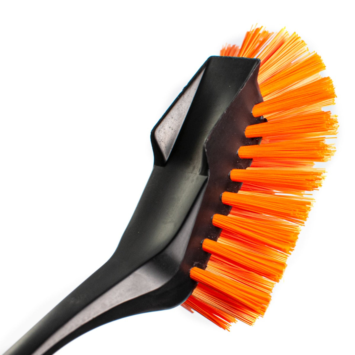 Sort plastikbagside med kraftig ridsekant og orange stive nylonbørster. Til rengøring af f.eks. værktøj og spande.