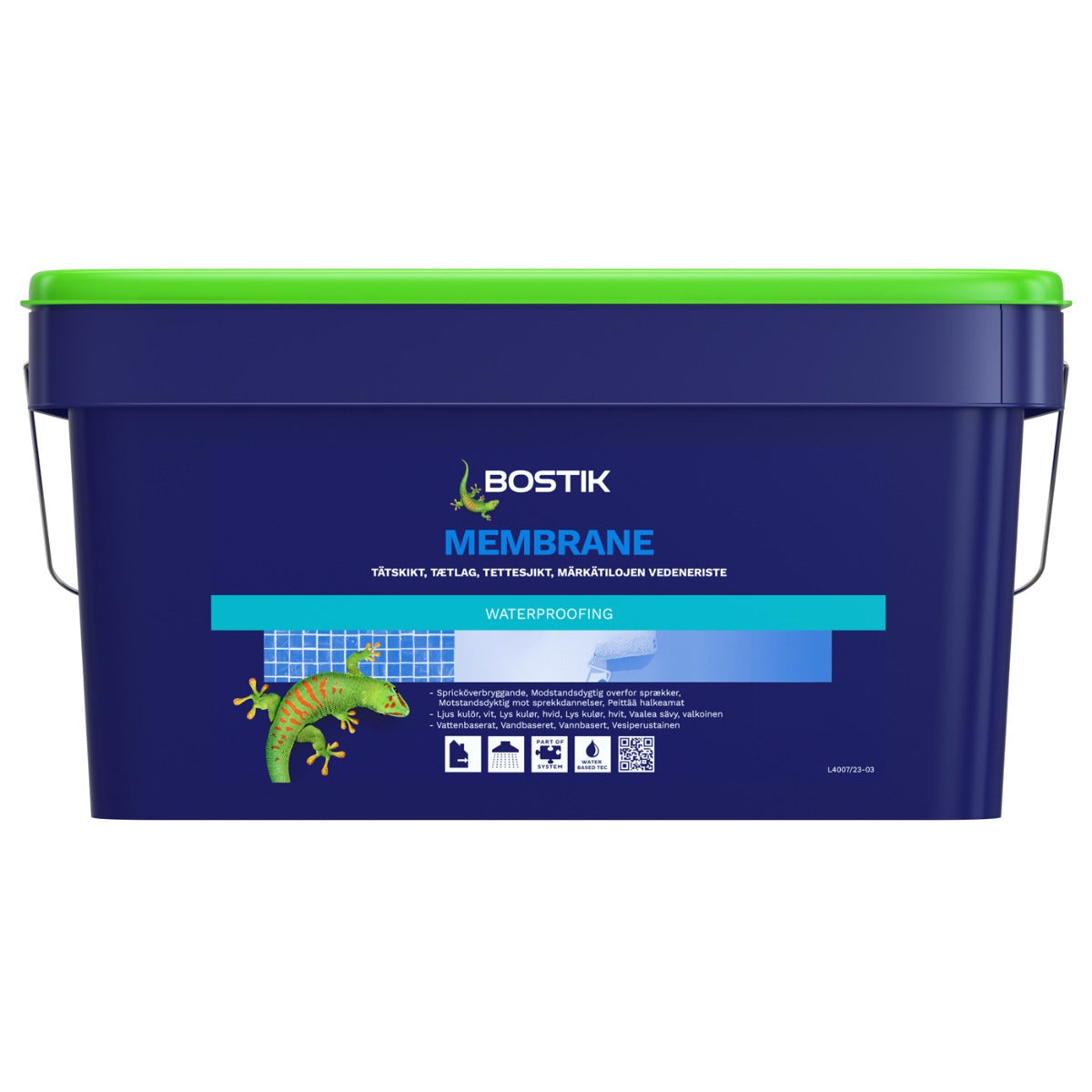 Tætningsmembran Bostik Membrane til fugt- og vandtætning af gulve og vægge i vådrum samt til montering af tætlagsfolien. Dispersionsbaseret tykflydende membranmasse til fugt- og vandtætning før montering af keramisk materiale etc. Godkendt til keramiske vådrumskonstruktioner.