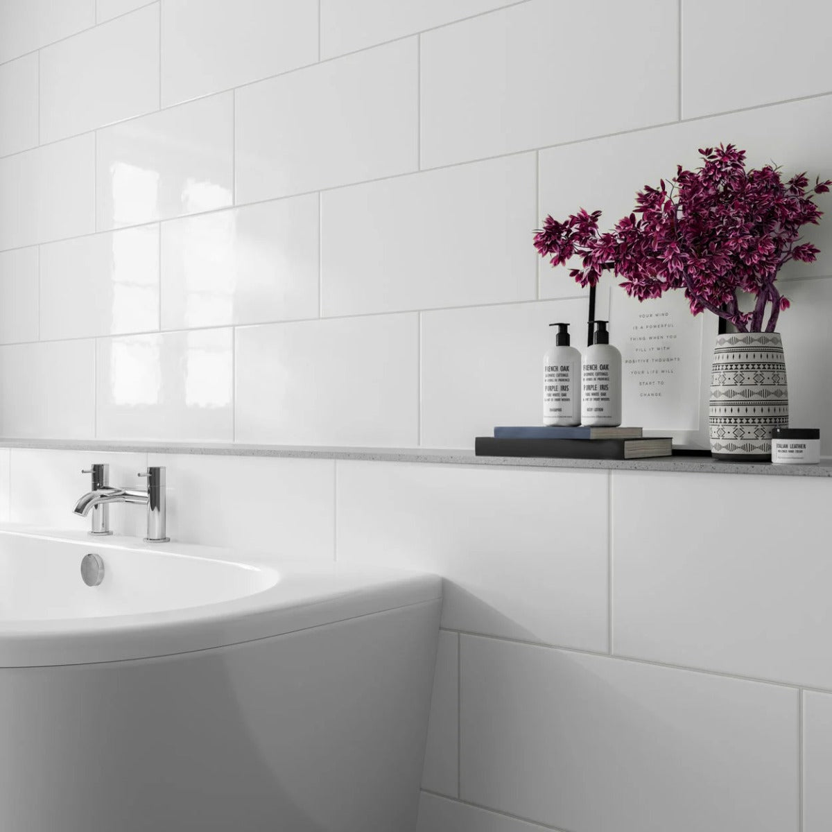 - Badeværelse: Skab en rolig og afslappende atmosfære på dit badeværelse med Vægflise Hvid 30x60. Den lyse overflade reflekterer lyset og åbner rummet op, samtidig med at det rene design giver en frisk og moderne følelse.